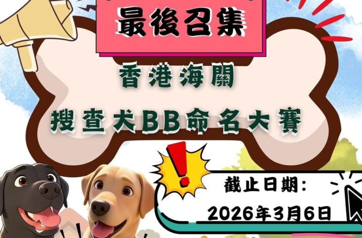 2026年3月3日12:43,海關搜查犬BB命名大賽將於3月6日截止,參加者提交作品即可獲得精美紀念品。香港海關去年引進了9隻由自家繁殖的拉布拉多幼犬,至今已經3個月大。海關現正舉行搜查犬BB命名大賽,並宣布即將進入「最後召集」階段。參加者可以在本週五(6日)截止日期之前為這9隻活潑可愛的搜查犬BB取一個有意義的名字。獲獎者將有機會與這9隻搜查犬BB見面,詳細參賽規則已刊載於海關官網上。參加者需將作品、姓名和聯絡電話提交至主辦機構指定的電子郵件地址([email protected])。評審團將選出冠、亞、季軍各一名,以及5名優異獎得主。所有獲獎者將獲贈精美紀念品,並受邀親自與這9隻名為”EXCELSIOR”的搜查犬BB見面。每位參加者提交作品後也可獲得一份海關搜查犬的紀念品。 想知得更多詳情?立即Click這裡 本文章由Open AI人工智能編寫,僅屬學術用途。 可參考相關同類新聞