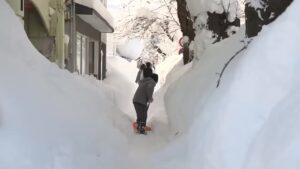 【天氣】日本再度警報級大雪!青森積雪破紀錄,東京也將積雪!各地大雪,青森屋頂積雪厚重,汽車困雪中,需除雪才能前行。更多細節請看影片。