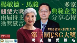兩屆翹楚大獎得主楊敏德、馬駿獲獎感言 多家典範企業分享心得 灼見名家x恒生大學第三屆ESG大獎接受報名(2024-04-19)