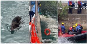北角小野豬墮海 消防救起送往嘉道理農場檢查(有片)
