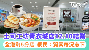 結業潮|土司工坊青衣城店12.10結業,全港僅剩5家分店,網民批評質素每況愈下。