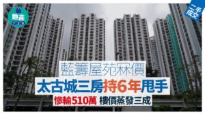 藍籌屋苑價格暴跌!太古城三房持有6年後急賣慘虧510萬,房價蒸發三成,二手樓市交易受衝擊。