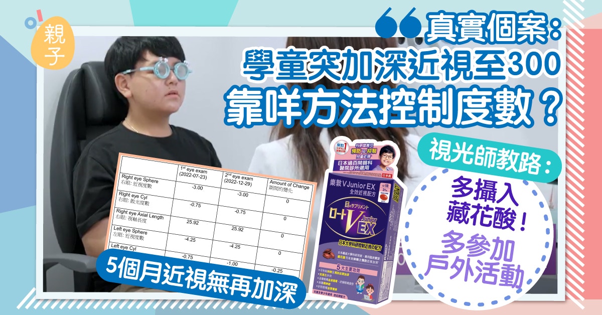 今天要分享的是台灣一位13歲學童的真實個案,他原本視力清晰,只有-1.5度,然而在5個月前,他的視力卻突然加深至-300度,令家長非常擔心。於是,他們將其帶去看眼科醫生,檢查發現他的視力已經極度加深,醫生建議他接受驅逐性治療。但家長不放心,因此決定先使用藥物控制視力,再配合屈光矯正鏡片。經過5個月的治療,學童視力成功控制至-1.5度,家長滿意地看到結果。