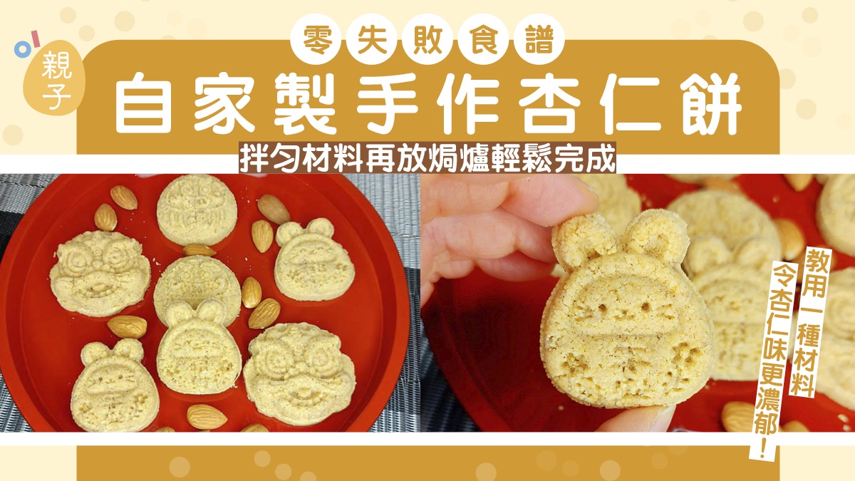 親子間最棒的互動,就是一起烹飪。讓孩子們感受烹飪的樂趣,同時學習安全的烹飪技巧,今天要介紹的就是一款輕鬆完成的手作杏仁餅,主要材料有:麵粉、糖、蛋、牛奶、杏仁粉、無鹽奶油,將所有材料拌匀,再將拌勻的餅皮倒入模具,撒上一層杏仁粉,放入焗爐,烤約20分鐘左右即可完成。拿出後,香氣四溢,酥脆口感,引起小朋友興趣,不但是親子間最佳的互動之選,更是孩子們最愛的甜點,簡單易做,也是展現孩子創意的絕佳甜點,快讓孩子們一起來烹飪,做出這款手作杏仁餅吧!