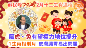 生肖運程2026|蘇民峰2月十二生肖運程:屬虎/兔有望權力地位提升,1生肖皮膚腸胃易出問題。