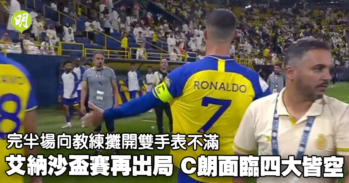 艾納沙今晨在沙特阿拉伯國王盃4強比賽中,以0:1不敵下半場10人出賽的對手艾維達而出局,而兩項盃賽連續三場皆不敵,使得球隊面臨四大皆空的局面。在比賽中,艾納沙有不少門前機會,但均未能攻破對手守門員,最終以0:1敗下陣來。C朗在比賽完半場時更因不滿而發脾氣,向場邊的暫代教練贊利錫攤大雙手,引起外界關注。