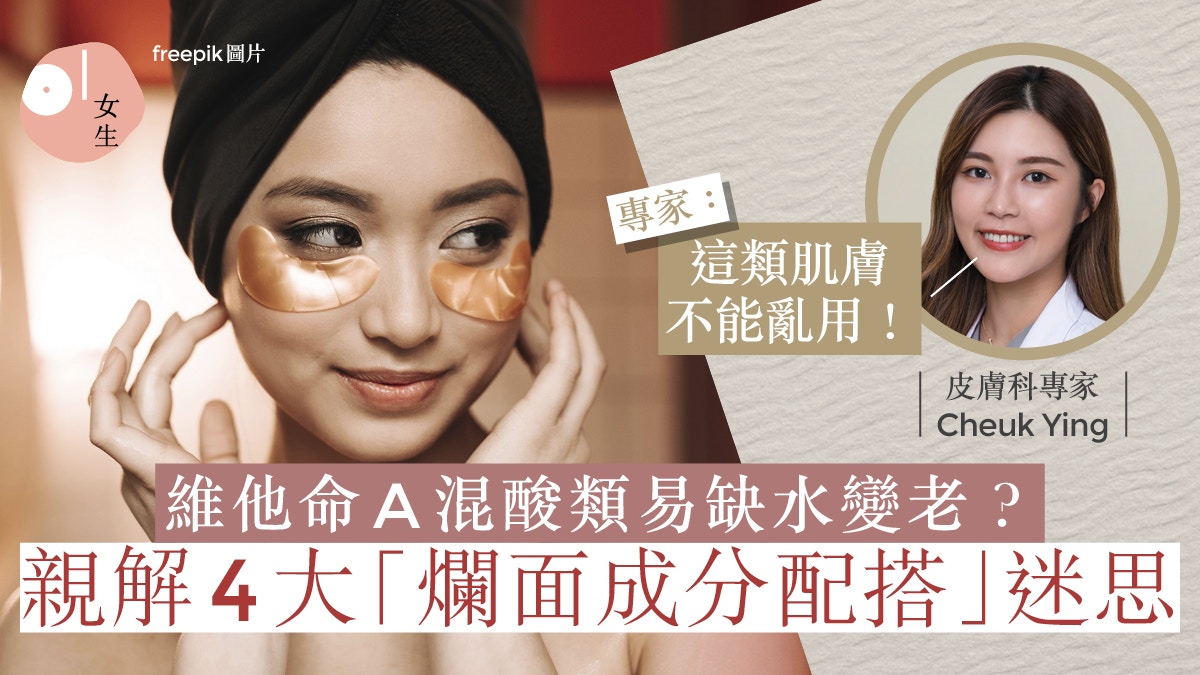 專家表示,若對於維他命A和酸類成分的比例配搭不當,就容易導致爛面或肌膚不適,所以最好在配搭時,遵循專家建議的比例,以保證有效性,又不會對肌膚造成傷害。