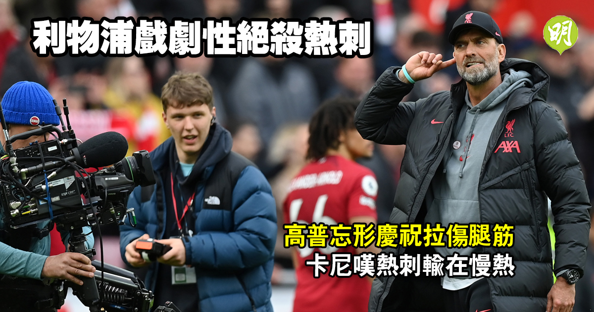利物浦今晨(1日)於英超主場開賽15分鐘內獲得3球領先,但最終卻在補時兩分鐘被熱刺追和,後來得以藉迪亞高祖達在1分鐘後絕殺,最終以4:3擊敗對手,獲得本季第33戰勝利,勝算累積至56分上第5位,落後少踢一場的「四哥」曼聯7分,爭取參加下季歐聯仍是一個被動的形勢。賽後,領隊高普賽成為焦點,他既批評被球證針對或遭秋後算帳,又承認因最後入球而忘形興奮慶祝,導致自己可能拉傷腿筋。