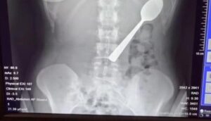 女子吃乳酪時,狗狗突然跳到身上,竟誤吞17厘米湯匙!深陷尷尬困境,網友驚呼「太驚險了!」。