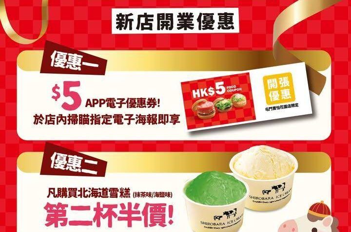 【屯門寶怡花園 開業限定雙重優惠🎊】屯門建生的居民們不用遠走他鄉,就能品嚐到MOS Burger啦!🥳新店開幕期間更有限定優惠驚喜🎁首先是📲APP $5電子優惠券*,只需要註冊成為MOS HK APP會員,並在APP內掃描二維碼即可領取優惠券。其次是北海道雪糕🍦(抹茶口味/其他口味),讓你享受冰涼的甜點。不要錯過這個難得的機會,快來寶怡花園的MOS Burger一嚐美味吧!【屯門寶怡花園 開業限定雙重優惠🎊】 想知得更多詳情?立即Click這裡 本文章由Open AI人工智能編寫,僅屬學術用途。 可參考相關同類新聞