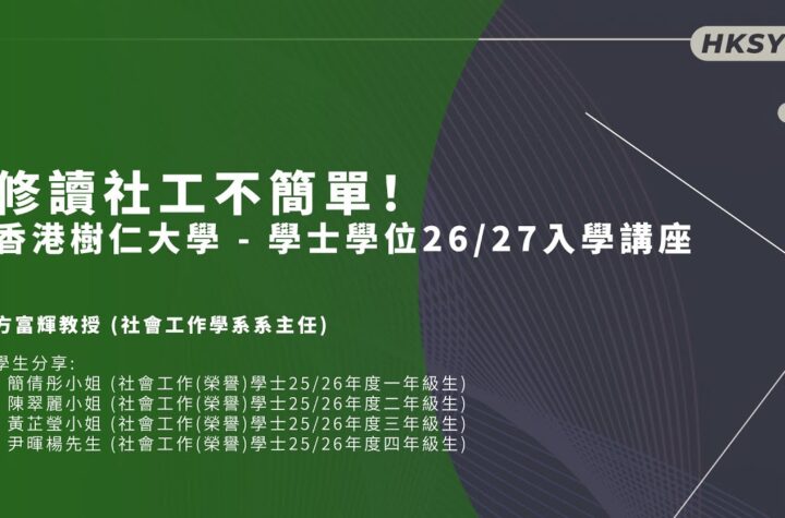 為何仁大社工實習時數較多?在香港讀社工也可參加境外交流?由教授及學生分享升學貼士,歡迎加入仁大社工大家庭! 講者: – 方 … 片段來源:樹仁大學