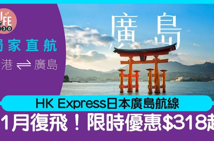HK Express|香港快運日本廣島航線 11月復飛!限時優惠$318起 HK Express香港快運宣布重新開通日本廣島航線,自2024年11月1日起每週三班直飛廣島機場(HIJ),僅需3個多小時的飛行時間即可抵達日本廣島,體驗當地豐富的歷史文化和特色美食。為了慶祝廣島航線的復飛,香港快運特別推出限時優惠,廣島「經濟飛」單程機票價格低至港幣318元*(包括一件隨身物品和登機行李),旅客還可以每程以港幣8元預訂標準座位,感興趣的旅客們請盡早預訂機票! HK Express香港快運日本廣島航線 香港(HKG)<>廣島(HIJ)(當地時間) 航班 航線 出發時間 到達時間 班次 UO822...