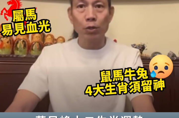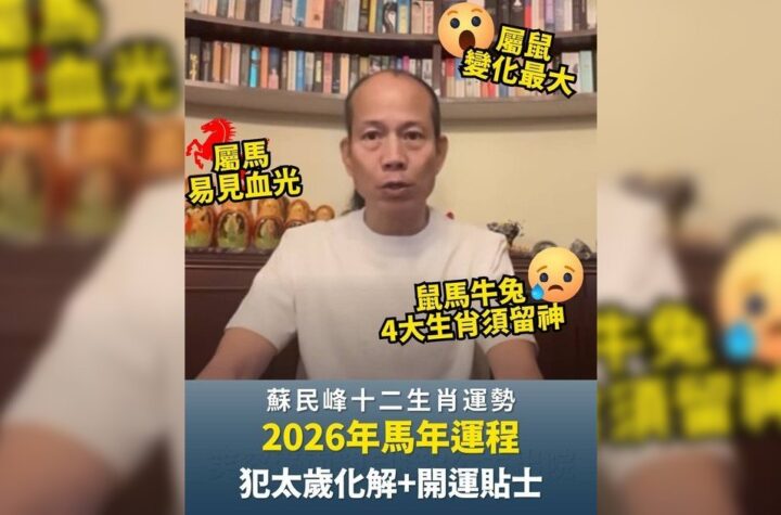 2026年將迎來丙午馬年,整體運勢將隨著流年的轉變而產生變化。命理專家湯鎮瑋老師在臉書上指出,明年有5個生肖可能會因犯太歲或沖太歲而在事業、財務和人際關係方面遇到困難。在這個特殊的年份,各生肖應特別注意避免犯太歲的情況,以避免帶來負面影響。根據湯鎮瑋老師的分析,明年的運勢對於這5個生肖來說可能會有一些挑戰,因此需要更加小心謹慎地應對。不過,即使遇到困難,只要保持積極樂觀的態度,相信在新的一年裡依然可以迎來好運。讓我們一起期待2026年的到來,為自己和家人帶來幸福和順遂的一年。 想知得更多詳情?立即Click這裡 本文章由Open AI人工智能編寫,僅屬學術用途。 可參考相關同類新聞