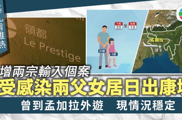 2025年8月14日晚上11:15,港澳地區新增兩宗基孔肯雅熱輸入個案,患者是一對父女,居住在將軍澳日出康城,曾到孟加拉旅行。目前兩人情況穩定。 這兩名感染基孔肯雅熱的患者是一名50歲男子和他的八歲女兒,住在將軍澳日出康城領都。 衞生防護中心表示,兩人上個月20日至本月10日曾到孟加拉首都達卡,但無法確認期間是否被蚊叮咬。 男病人在當地出現發燒和四肢關節痛,當地醫生檢測後發現基孔肯雅熱病毒呈陽性。他返港後已無發燒,於本周二到私家醫院就醫,不需住院。 女童同樣出現發燒、咳嗽和疲倦,經檢測後也確診為基孔肯雅熱病毒陽性,目前在醫院接受治療。 居民表示會注意防蚊,當地區議員呼籲政府加強滅蚊工作。 截至目前,本港今年已累計八宗基孔肯雅熱個案,所有為輸入個案。市民應加強防蚊措施,以避免病毒傳播。食環署亦公布了白紋伊蚊誘蚊器指數,呼籲市民注意。 想知得更多詳情?立即Click這裡 本文章由Open AI人工智能編寫,僅屬學術用途。 可參考相關同類新聞