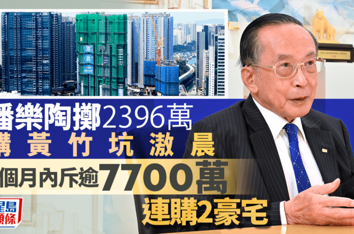 港島站頂豪宅罕有新供應,吸引名人出動購買;最新曝光為安樂工程創辦人、前律政司司長鄭若驊的丈夫潘樂陶,月前購入西貢銀線灣別墅洋房後,上月又以2396.4萬購入滶晨一個3房套單位,3個月內已花超過7746萬連買2個豪宅。 新世界夥拍帝國、資本策略、麗新及港鐵合作發展的黃竹坑站上蓋港島南岸新盤滶晨1A座中低層P2室,面積870方呎,有3房套連工作間單位,設有私人升降機前廳。 想知得更多詳情?立即Click這裡 本文章由Open AI人工智能編寫,僅屬學術用途。 可參考相關同類新聞