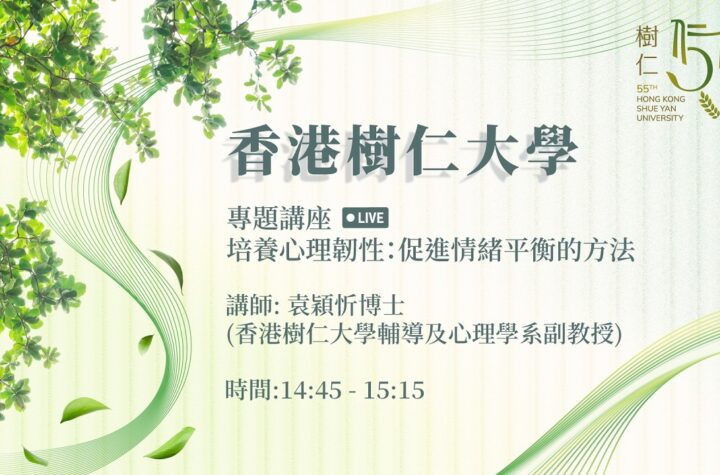 由香港樹仁大學輔導及心理學系副教授、「逆境及創傷心理學社會科學碩士課程」課程總監袁穎忻博士主講,分享心理韌性的核心 … 片段來源:樹仁大學
