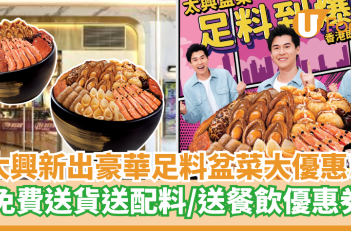 冬至即將到來!當然要約親朋好友一起吃盆菜,才有氣氛。太興今年推出兩款豪華大盆菜,不僅限指定地區免費送貨到府,還贈送價值HK$138的餐飲優惠券,詳情如下: 極品鮑魚開心大盆菜(12位用)低至HK$1,750(原價HK$2,480) 包括12隻原隻蠔皇鮑魚、12個原粒瑤柱蠔豉福袋、五星級燒肉、燒鵝、桶子油雞、12隻鮮甜大蝦,加上紅炆花菇、五香芋頭、南乳豬手、雲耳等。 極品鮑參花膠至尊盆菜(8-10位用)低至HK$1,850(原價HK$2,580) 包括蠔皇海參、嫩滑紅炆花膠、8隻原隻蠔皇鮑魚、8個原粒瑤柱蠔豉福袋、五星級燒肉、燒鵝、桶子油雞、鮮甜大蝦等。 每份盆菜附送不銹鋼大湯勺、長筷子或漏勺、即棄耐熱碗、筷子及湯匙,還免費贈送配料,包含枝竹、新鮮娃娃菜、金菇及芋絲。凡購買盆菜均送太興優惠券總值HK$138,包括6張HK$20太興晚市小菜優惠券和6張HK$3太興早餐優惠券。 訂購日期: 2025年12月1日至2026年1月4日(冬至) 2026年1月19日至2026年3月3日(新春) *12月21日冬至正日或2026年2月17日年初一、2月18日年初二享用需加HK$150附加費。 想知得更多詳情?立即Click這裡 本文章由Open AI人工智能編寫,僅屬學術用途。 可參考相關同類新聞