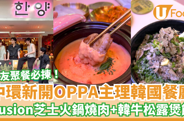 中環最近開了一家叫做「Hanyang」的新派韓國餐廳,主打創意fusion韓式燒肉,由帥哥oppa主理,菜單包括BBQ燒肉、拉麵、鍋飯及火鍋等多款選擇,必試招牌漢陽凍三層肉、芝士火鍋和韓牛松露煲飯!店內有多種韓式燒酒、米酒及啤酒,供大家搭配美食,是朋友聚餐的最佳選擇~ 全新型格x傳統韓國餐廳 Hanyang座落於中環蘇豪區域,由韓國oppa親自主理,餐廳門前的粉紅色霓虹燈招牌,配上充滿傳統韓國元素的擺設,令路過的途人都眼前一亮。店內氛圍十分舒適,是適合朋友聚餐、拍拖食飯或小酌一杯的好地方。 必試新派韓式BBQ燒肉 餐廳主打創意fusion韓式燒肉,特別推薦漢陽凍三層肉 ($138),搭配漢陽芝士火鍋 ($88) 的神奇組合!先將韓國人至愛的薄切三層肉,放在烤盤上烤至焦香,再以生菜包起來,蘸上特製韓式醬料,享受正宗的韓式滋味。 招牌「漢陽芝士火鍋」將多款芝士與蕃茄醬完美融合,炮製出超獨特的燒肉蘸醬!把烤至金黃焦香的薄切三層肉,配搭醃漬洋蔥放在墨西哥薄餅上,再蘸上香濃芝士蕃茄醬汁,即可體驗絕妙的韓式與西式fusion滋味~ 漢陽凍三層豬三合 ($388) 及牛腩片九折盤 ($388),也是店主推介的必試菜式,前者包括三層肉、短臂章魚、帶子、鮮蝦及白泡菜等多款食材,加入新鮮蔬菜翻炒至熟透,包裹紫蘇葉或墨西哥薄餅食用。 多款惹味正宗韓國料理...