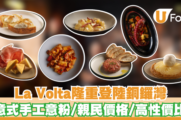 全新意大利手工意粉專門店La Volta於今夏在銅鑼灣開幕,由餐飲資深人士和米芝蓮二星名廚攜手合作。餐廳主打多款每日新鮮製作、形狀各異的手工意粉,以親民價格提供高性價比的意式「Getaway」體驗。La Volta餐廳設計以木材和石材為主調,營造出原始而輕鬆的用餐氛圍。午市菜單每兩週更新一次,提供四款精緻頭盤、六款手工意粉及三款甜品組合,兩道菜$148起,三道菜$178起。餐廳精選Monograno Felicetti和Gentile兩款乾意粉品牌,呈現地道意式風味。晚間菜單呈獻多款獨特晚間限定的前菜、意粉及甜品,包括招牌前菜Burrata & Truffle Honey Bruschetta、外脆內嫩Oxtail Croquettes、選用意大利西北部Piedmont Fassona牛製作的Fassona Beef Tartare。手工意粉特色鮮明,如加入本地花甲與沙白的Linguine alla Vongole,藏有流心蛋黃的特大Egg...