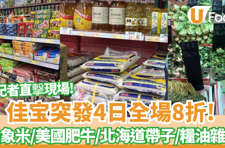 【超市優惠】迎接2026年,各位街坊又要準備辦年貨「開年」了!以親民價著稱的佳寶食品超市今日突然宣布推出極具誠意的「快閃優惠」,從1月8日至1月11日連續四天全場8折大減價。這次優惠最吸引的地方是涵蓋了大部分商品,不管是糧油雜貨、急凍肉類還是家居用品,折扣後的價格甚至比批發價更便宜,絕對是主婦們進貨的最佳時機。記者親自到場直擊現場,立即看內文了解!在眾多減價商品中,糧油類絕對是必搶首選。受到港人家庭喜愛的「金象牌頂上茉莉香米(8kg)」折後僅需87.2元一包,這個價格在市場上難以找到,建議有能力的話一定要搬兩包回家。食油方面,「刀嘜純正花生油(5.5L)」折後價126.4元,而「獅球嘜粟米油(900ml x 4支裝)」也只需79.2元,平時煮飯用量大的家庭絕對不能錯過。佳寶突發4日全場8折!準備一家人享用豐富年菜?佳寶的急凍肉類和海鮮同樣有驚喜。打邊爐必備的「美國牛板腱肥牛片」折後只需56元一磅,肉味濃郁又划算;想奢侈一點還有「北海道帶子(1kg)」售價200元,以及「原生態鮑魚(12個裝)」只需70.4元,平均每隻不到6元,性價比極高。如果想簡單煮一餐,家裡必備的「七鮮水餃」無論是粟米蔬菜豬肉還是白菜豬肉口味,折後每包僅13.6元,用來做宵夜或午餐都非常合適。除了食材,家居消耗品也是囤貨的重點。這次優惠還包括「維達四層衛生紙(12卷裝)」,折後兩條共43.2元,平均每條僅需21.6元;而「七鮮雲柔壓花有芯卷紙(12卷裝)」更低至平均18.8元一條,絕對是超值的大宗商品。點擊圖片查看年貨清單(折後價):佳寶食品超市全場8折!優惠日期:即日起至1月11日地點:全線分店同步進行(海濱花園分店除外)備註:適用於大部分商品;數量有限,售完即止資料及圖片來源:佳寶食品超市 <<提醒大家,在購買前請注意訂購平台的使用條款和細則,一切以訂購平台和超市公佈的價格為準。數量有限,售完即止;所有優惠細則更新至文章發布日期,訂購平台和超市保留更改優惠的權利,U Lifestyle概不負責。>>7-Eleven大折日滿50元全單8折踏入2026年,便利店7-Eleven立即為全港市民送上第一份「大禮」,宣布推出年度首個「限定大折日」,以震撼折扣來感謝顧客的支持!從1月9日上午7點起,顧客只需在全港任何一間7-Eleven購物滿100元,即可即時享有全單8折優惠。為了讓更多趕時間的上班族受益,今次活動特別降低了地鐵站分店的門檻,只需購物滿50元即可享用8折優惠,買早餐或零食更加容易湊夠金額。這次大折日還將再次加入「貓頭鷹時段」,將優惠延長至1月10日上午6時59分,換句話說有足足24小時讓大家不間斷地購物,無論是返工前、放工後甚至是宵夜時段都能以折扣價格購買。7-Eleven必買推薦按此查看更多友誠平價超市最平2.5元件網民:窮人的福音!友誠食品平價超市深受網民喜愛,是香港知名的平價雜貨店之一,店內售賣各種罐頭、速食麵、飲料、調味料、零食等,部分商品比大型連鎖超市便宜許多,包括10元四瓶烏龍茶、10元三包魚肉燒賣、5元速食麵、11元盒裝牛奶等,最便宜的甚至只需2.5元一件,是不少香港人或遊客的購物天堂,被稱為窮人的福音。友誠平價超市進駐土瓜灣全港第7間分店想以最優惠的價格購買零食、飲料、冷凍食品、糧油雜貨的話,絕對要到友誠超市採購!友誠食品平價超市在全港共有7間分店,分別位於旺角、黃大仙、葵芳、深水埗、新蒲崗等地區,土瓜灣全新分店已於1月5日正式開業,選址在土瓜灣譚公道,開幕當天已吸引大批街坊光顧!友誠食品平價超市地址:土瓜灣譚公道38號地下營業時間:星期一至日08:00 – 22:00地址:長沙灣青山道203號營業時間:星期一至日08:00 – 22:00地址:新蒲崗爵祿街52號地下營業時間:星期一至日08:00 – 22:00地址:長沙灣道39-41號地下E-F鋪營業時間:星期一至日08:00 – 22:00地址:旺角塘尾道27-41號2號鋪百勝大廈地下營業時間:星期一至日08:00 –...