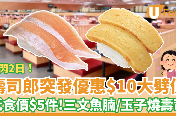 【壽司郎優惠】日本連鎖壽司店「壽司郎Sushiro」帶來年尾驚喜優惠!指定日期推出$10碟大劈價壽司,包括三文魚腩壽司及玉子燒壽司,每碟只需$10,平均$5件超抵食!詳情請查閱$10突發減價壽司詳情,約定朋友一同享用美食!12月29日 (星期一) 及30日 (星期二) 推出$10三文魚腩壽司和$10玉子燒壽司,每件只需$5!限時優惠,數量有限,售完即止。優惠只適用於堂食,不設外賣自取。詳情請向店員查詢。別錯過這個驚喜優惠!👉🏻壽司郎分店及菜單:按此。記得留意訂購平台使用條款及細則,一切以平台及餐廳公佈價格為準。數量有限,售完即止,U Lifestyle 概不負責。快來壽司郎享受冬日美味祭,新品低至$12一碟,包括煮穴子、熱食、擔擔麵等,每款都是必試滋味,令人垂涎!詳情查閱完整Menu及價錢。 想知得更多詳情?立即Click這裡 本文章由Open AI人工智能編寫,僅屬學術用途。 可參考相關同類新聞