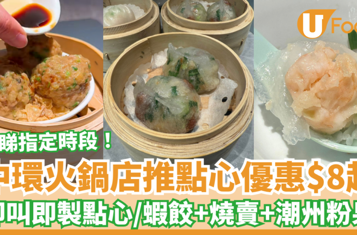 【點心優惠|飲茶優惠】香港人閒時都喜歡到茶樓飲茶,喝茶同時歎美味點心!最近,有網民在「點心關注組」分享,在中環火鍋店發現特價點心,每籠最平$8起,包括蝦餃、燒賣、潮州粉果、腐皮卷等選擇,更主打即叫即製,賣相十分吸引!即睇內文介紹,與家人朋友一起歎平價手工點心吧~ 中環「八號火鍋」手工即製點心 中環八號火鍋「踩過線」賣平價手工點心,包括蝦餃、燒賣、潮州粉果、牛肉球等,廚師現場即叫即製,每一籠都新鮮熱辣,更有荔枝紅茶及人蔘烏龍選擇!有網民在「點心關注組」分享於八號火鍋的用餐體驗,大讚「環境寬敞坐得舒服,食物合格,茶好香」,特價點心每籠$8至$10,連茶錢及加一服務費,兩位只須$133埋單。 $8起歎蝦餃+燒賣+潮州粉果 八號火鍋推出限時點心優惠,每日上午11點至下午4點供應,包括午市及茶市時段,指定特價手工點心,每籠$8至$10超抵食,包括蟹籽燒賣皇、八號蝦餃皇、奶皇千層馬拉糕、雪山叉燒包、潮州粉果、蘿蔔糕、鮮蝦腐皮卷等,全部即叫即製!其餘正價點心也有8折優惠,是中環少見的高性價比茶樓~ 八號火鍋 地址:中環威靈頓街2-8號威靈頓廣場M88地舖電話:2711 3288 / 9728 7888 (WhatsApp)營業時間:星期一至日 08:00 –...