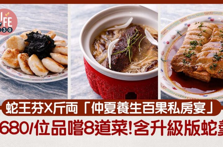 中環美食|蛇王芬X斤両私房推出「仲夏養生百果私房宴」$680/位品嚐8道菜 中環老字號「蛇王芬」與新晉品牌「斤両」攜手呈獻「仲夏養生百果宴」,為饕客帶來一場跨越世代的粵菜盛宴。這次合作匯聚了蛇王芬80年的傳統底蘊和斤両年輕創新的烹飪理念,完美演繹了粵菜文化的傳承與創新。私房宴由斤両創辦人張東正與蛇王芬資深大廚任錦松共同主理,巧妙融合傳統工藝與現代元素,為經典粵菜注入新的活力。這場跨代合作不僅體現了兩個品牌對傳承中菜文化的決心,更為粵菜的未來發展開闢了新的可能性。 「仲夏養生百果宴」由張東正師傅主道,與蛇王芬任職超過 30 年的大廚任錦松師傅共同創作。蛇王芬負責人吳卓芝表示:「作為屹立中環超過 80 年的老店,我們雖然有不少捧場熟客,然而我亦一直希望聯承更多不同的品牌,尋求新方向,將自己家業以及粵菜推廣給更多年輕人。而張東正師傅就是年輕一代的粵菜廚師,他既喜歡鑽研老食譜,又有這個時代的觸覺,因此我很放心把這個合作交給他處理,而效果也十分滿意!」 蛇王芬 x 斤両私房「仲夏養生百果宴」,張東正師傅除了帶來自家創作的摩登粵菜,亦有升級版的蛇羮,以及與蛇王芬任職超過 35 年的大廚任錦松師傅共同研發的菜式,為老菜展現全新面貌。每位$680 (四位起),由於菜式製作需時,只接受預訂,供應期至 8...