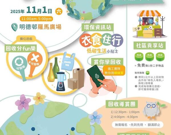 將軍澳明德邨將於2025年11月1日舉辦「賞你回收救地球嘉年華」活動,由「綠在西貢」主辦。活動包括回收分類遊戲、天然吸濕包再造工作坊和安裝綠綠賞程式等環保活動。完成遊戲或工作坊可獲得樽蓋代幣,用以在社區貢享站換領二手物品。另外,還有回收導賞團探索明德邨的回收設施。參與活動的過程中可以學習正確的回收方法,製作環保用品,並將積分轉換成易賞錢或Carbon Wallet。活動免費入場,歡迎家庭和朋友一同參與。立即標記日期,一同支持環保活動,盡力拯救地球!香港好去處etnet將為您帶來更多有關活動的資訊。 想知得更多詳情?立即Click這裡 本文章由Open AI人工智能編寫,僅屬學術用途。 可參考相關同類新聞