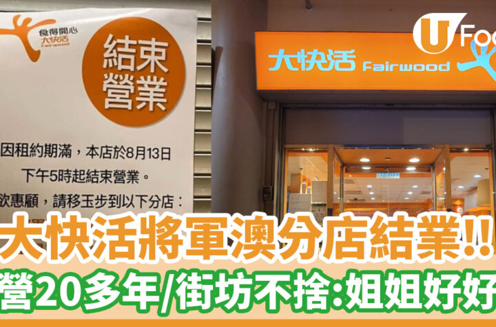 香港知名連鎖快餐店「大快活」宣佈將於8月中結業,引起結業潮。位於將軍澳的分店將因租約期滿而結束經營,讓不少街坊感到不捨。這家大快活在香港經營多年,陪伴著許多港人成長。有網友在社交平台上哀嘆這家快餐店經營了20多年,更表示捨不得店裡的靚女姨姨。原來,店裡的姐姐和街坊們都有許多美好回憶,大讚「個個姐姐都好好人」。這家大快活成為了不少人的回憶之地,結業消息引起了許多人的關注和回憶。希望這樣一個受歡迎的快餐店能夠在結業前得到更多人的支持和祝福。 想知得更多詳情?立即Click這裡 本文章由Open AI人工智能編寫,僅屬學術用途。 可參考相關同類新聞