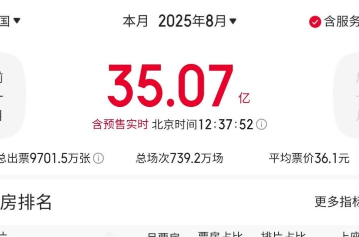 根據網絡平台數據顯示,截至2025年8月16日12時17分,今年8月電影總票房已突破35億。《南京照相館》持續引領8月票房榜,而《浪浪山小妖怪》和《東極島》則分列二、三位。值得一提的是,今年是中國人民抗日戰爭暨世界反法西斯戰爭勝利80周年,許多作品紛紛上映,包括以抗戰歷史為主題的影視、戲劇、音樂、舞蹈及美術作品。其中,《南京照相館》的總票房已超過24億,而《東極島》和《山河為證》的票房也表現不俗。此外,多部新片也已定檔,包括《有朵雲像你》、《脫韁者也》、《營救飛虎》、《愛的暫停鍵》(挪威)、《輕於鴻毛》以及即將於9月18日上映的《731》。(資料來源:央視新聞) 想知得更多詳情?立即Click這裡 本文章由Open AI人工智能編寫,僅屬學術用途。 可參考相關同類新聞