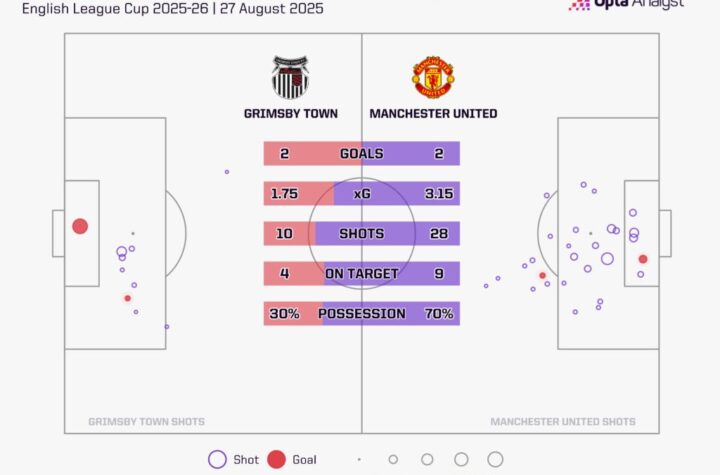 曼聯(Manchester United)周三在英格蘭聯賽盃第二輪賽事中,以互射十二碼不敵英乙球隊甘士比(Grimsby Town),創下球會歷史上首次被第四級別聯賽球隊淘汰的恥辱紀錄。這場敗仗令領隊艾摩廉(Ruben Amorim)的帥位岌岌可危,賽後他的言論更引發外界對其未來的猜測。比賽中,曼聯一度落後0:2,儘管最終追平至2:2,但仍需以互射十二碼決勝負,結果慘遭淘汰。根據Opta數據顯示,曼聯在這場比賽中的預期進球值(xG)明顯高於對手,但最終無法轉化成進球優勢。這場失利不僅讓球迷感到失望,也讓球隊面臨著更大的壓力和挑戰。希望曼聯能夠盡快調整狀態,重振旗鼓,重返勝利軌道。 想知得更多詳情?立即Click這裡 本文章由Open AI人工智能編寫,僅屬學術用途。 可參考相關同類新聞