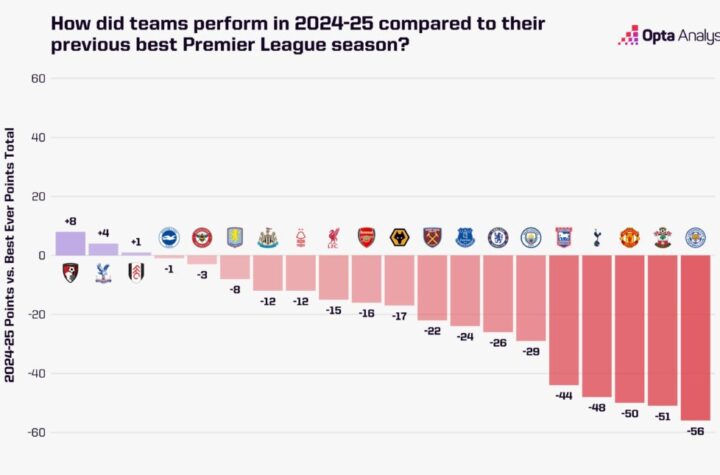 2024-25賽季的英超聯賽已經結束,讓我們來看看那些球隊創下了歷史性的積分紀錄,無論是正面還是負面的。本賽季共有八支球隊打破了他們的英超聯賽最高或最低積分紀錄。其中,伯恩茅斯以56分刷新了他們的最佳紀錄,比上賽季提升了8分。主教練伊拉奧拿的改革效果顯著,球隊首次實現了正面進球差(+12),勝場(15場)和敗場(12場)都創下了英超聯賽的最佳紀錄。數據模型顯示… 想知得更多詳情?立即Click這裡 本文章由Open AI人工智能編寫,僅屬學術用途。 可參考相關同類新聞
