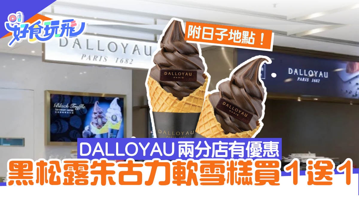 DALLOYAU黑松露朱古力軟雪糕即將回歸,並推出一項令人振奮的優惠活動。只要在兩家指定分店購買一份DALLOYAU黑松露朱古力軟雪糕,即可獲得另一份完全免費。此外,這項優惠還附帶有效期限,請留意相關日期。