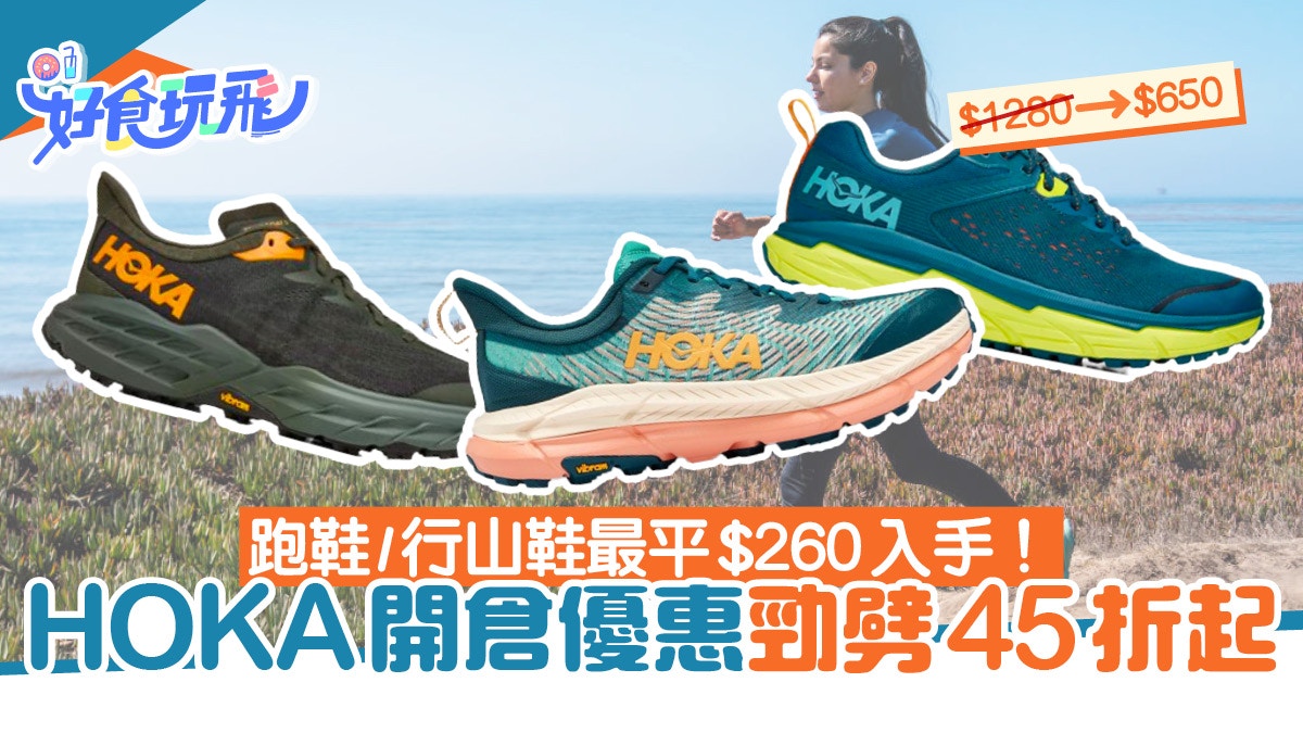 HOKA系列鞋款劈價低至45折,現在開倉優惠正式開跑!活動期間,樂活客將提供優惠價低至45折的折扣,只要$260,就可以入手HOKA跑鞋、行山鞋,價格十分實惠!讓您輕鬆換上一雙新鞋,享受旅行與運動時的最佳舒適,讓你擁有最輕鬆自在的活動體驗!