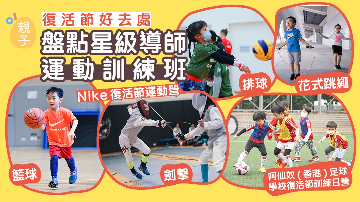 Nike復活節跳繩劍擊籃球訓練班與阿仙奴足球學校日營,是親子好去處之一。Nike復活節跳繩劍擊籃球訓練班,專為兒童設計,讓孩子們從玩耍中學習,提高孩子們的動作能力、穩定性、技術能力與籃球知識,有助培養孩子們的專注力和體育精神。另外,阿仙奴足球學校日營也是親子好去處,提供足球技術訓練、足球文化活動、球場比賽、營會活動等,讓孩子們學習足球技術,也能體驗國際足球文化,養成健康的生活態度。